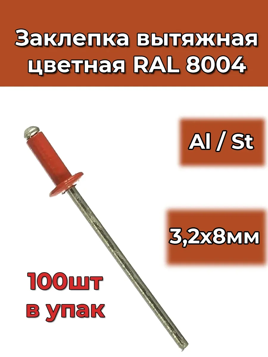 Заклепка вытяжная цветная RAL 8004 - купить в KeepBuilding | KeepBuilding