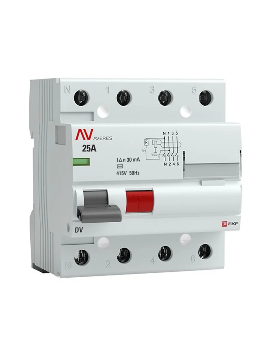 Выключатель дифференциального тока (УЗО) 4п 25А 30мА тип AC DV AVERES EKF rccb-4-25-30-ac-av - купить в KeepBuilding | KeepBuilding