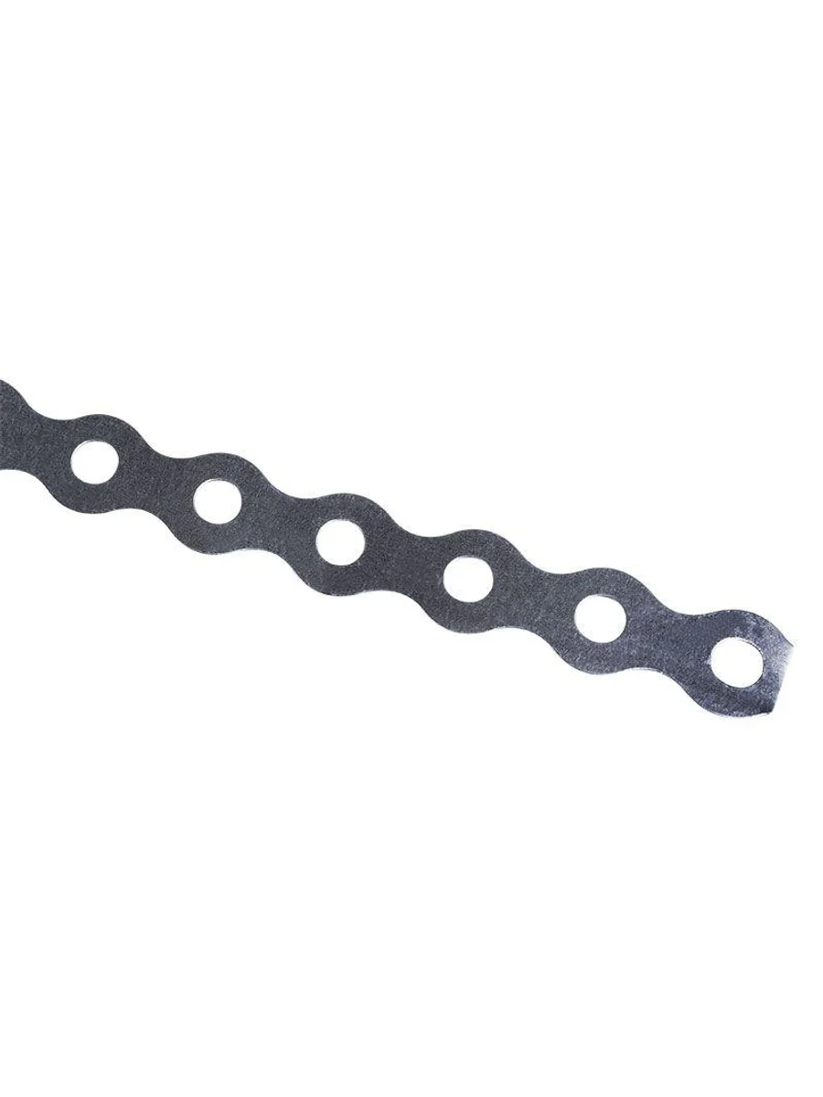 Оцинкованная перфорированная монтажная лента-волна 12х0,55 мм применяется для сборки деревянных конструкций, монтажа систем вентиляции, отопления, водоснабжения и иных инженерных коммуникаций. Может также использоваться для крепления, соединения и усиления различных конструкций. Представляет собой волнистую стальную ленту с перфорацией. Отличается высокой прочностью на излом и гибкостью, поэтому может принимать нестандартную форму. Цинковое покрытие защищает ленту от коррозии и продлевает срок ее службы. Монтируется при помощи стандартных гвоздей и шурупов. Ножницами по металлу можно отрезать фрагмент ленты любой длины. Лента длиной 25 метров поставляется в рулоне. Шаг перфорации: 15 мм.