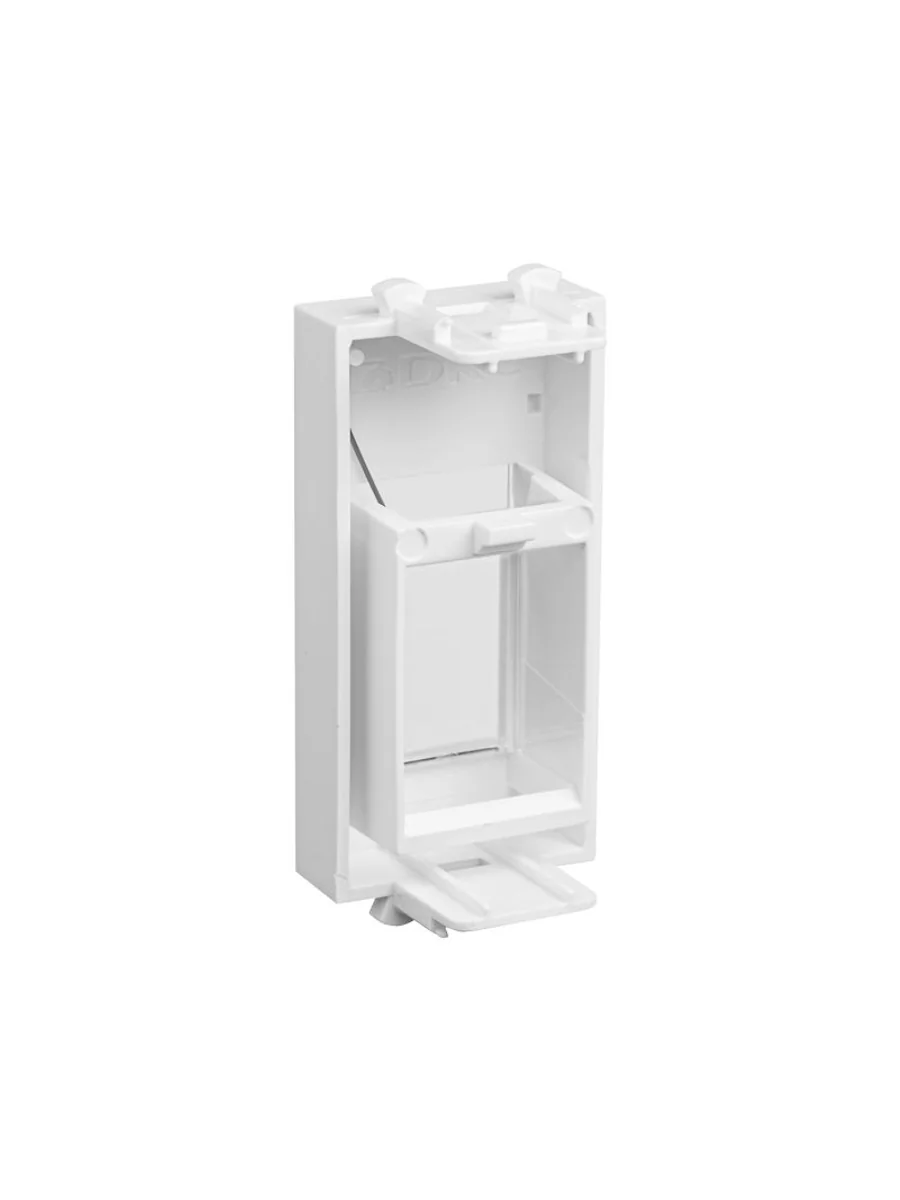 Адаптер со шторкой для Keystone. Предназначен для монтажа в систему пластиковых коробов "In-liner Front" и систему организации рабочих мест "Sotto" при помощи рамок-суппортов и каркасов "Avanti" (код 4400912 и т.д.). Используется для монтажа интернет-розеток типа Keystone. Механизмы с возвратной защитной шторкой. Фиксация в подрозеточные коробки глубиной не менее 45 мм при помощи каркаса с лапками (код 4400802) и саморезов. 1 модуль. Цвет: "Белое облако". Совместим с модулями Keystone: RNK6AF90TL; RNK6AU180BK; RNK6AU180WH RNK6F90TL; RNK6U180BK; RNK6U180WH RNK5EF90TL; RNK5EU180BK; RNK5EU180WH.