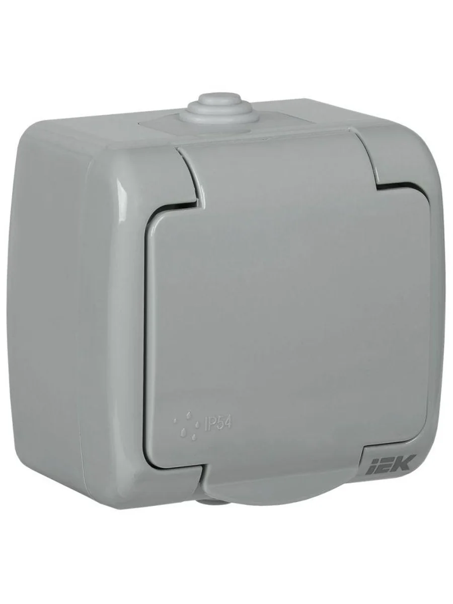 Розетка 1-м ОП Aquatic РСш12-2-А 16А IP54 с заземл. с крышкой сер. IEK ERA12-K03-16-54 - купить в KeepBuilding | KeepBuilding