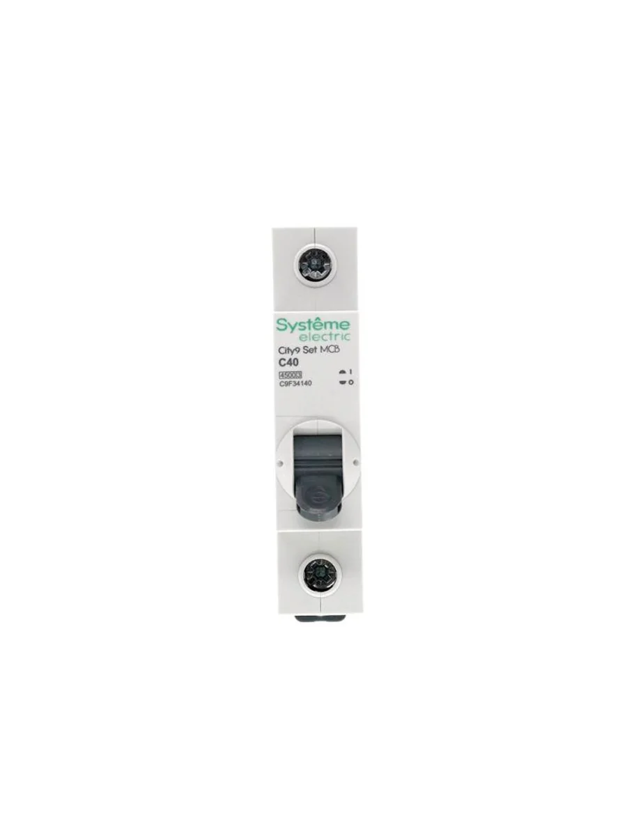 Автоматический выключатель серии City9 Set Systeme Electric, 1-полюсный, номинальный ток 40 А, характеристика С, Icn = 4.5 кА. Применяется в электрических сетях напряжением 230 В. Предназначен для защиты от перегрузок и токов короткого замыкания. Оснащен механизмом «мгновенной коммутации». Ударопрочный корпус из специального пластика с 6 металлическими заклепками. Безопасные клеммы исключают попадание кабелей в заклеммное пространство (ранее Schneider Electric EZ9F34140).