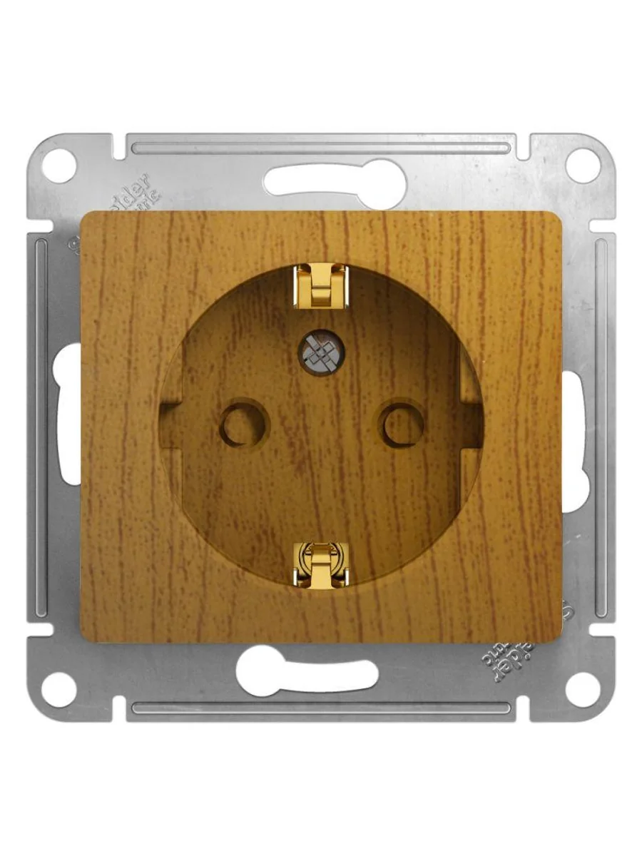 Механизм Systeme Electric (ранее Schneider Electric) серии Glossa (цвет дерево дуб) розетки одинарной с заземлением и шторками подходит для сетей 250 В, на ток 16 А. - Заземляющий контакт обеспечивает дополнительную защиту от удара электрическим током. При наличии заземления электрический потенциал уходит в землю, защищая человека. - Выполнен из материала PС+ASA, стойкого к УФ-излучению и появлению царапин. - Эргономичные клеммы розеток расположены в один ряд.