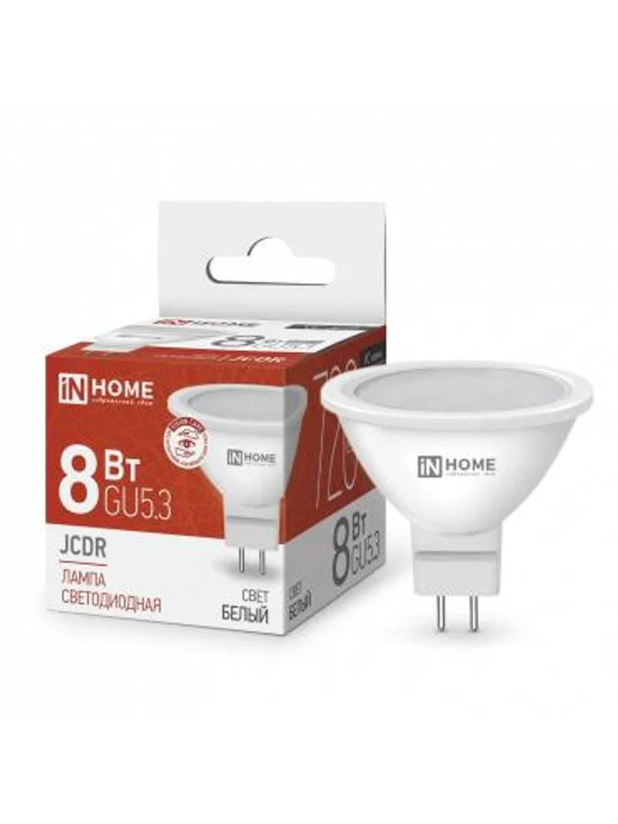 Лампа светодиодная LED-JCDR-VC 8Вт рефлектор 4000К нейтр. бел. GU5.3 720лм 230В IN HOME 4690612020334 - купить в KeepBuilding | KeepBuilding