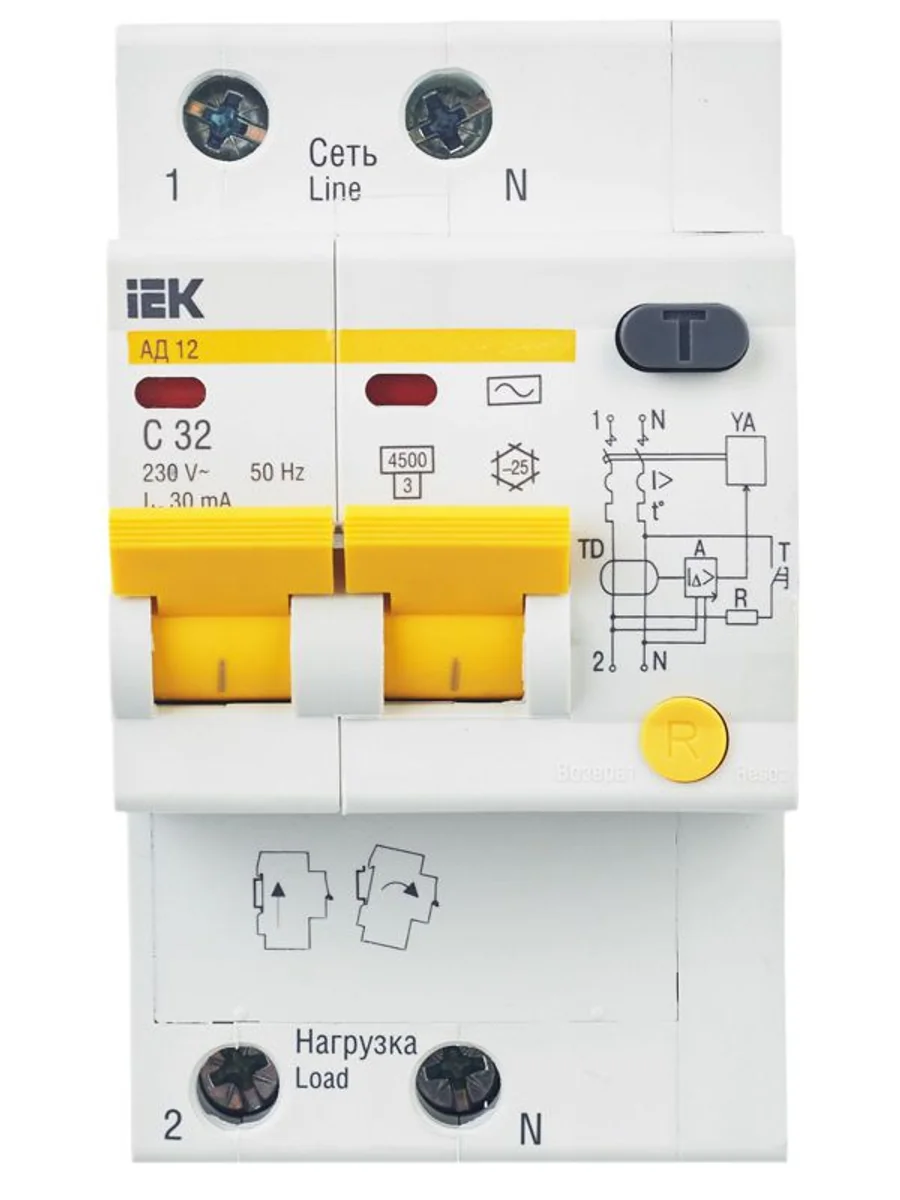 Выключатель автоматический дифференциального тока 2п C 32А 30мА тип AC 4.5кА АД-12 KARAT IEK MAD10-2-032-C-030 - купить в KeepBuilding | KeepBuilding