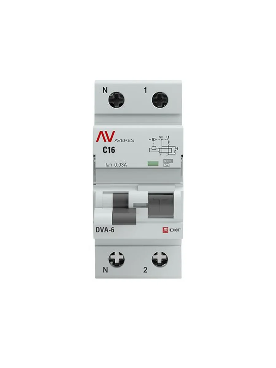 Выключатель автоматический дифференциального тока 2п (1P+N) C 16А 30мА тип AC 6кА DVA-6 Averes EKF rcbo6-1pn-16C-30-ac-av - купить в KeepBuilding | KeepBuilding