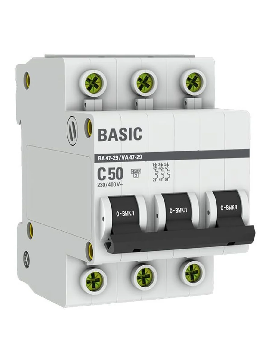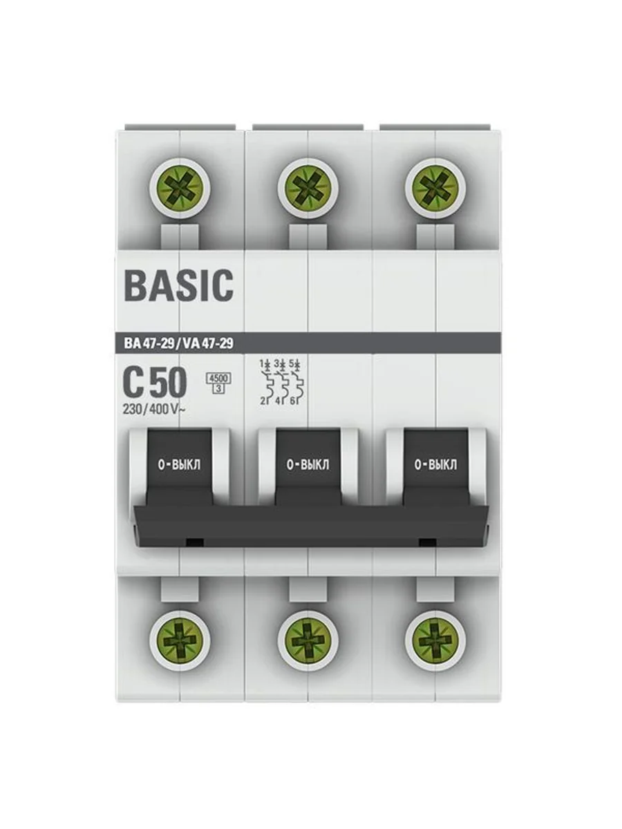 Выключатель автоматический модульный 3п C 50А 4.5кА ВА 47-29 Basic EKF mcb4729-3-50C - купить в KeepBuilding | KeepBuilding