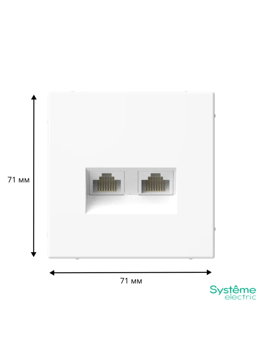 Механизм Systeme Electric серии ArtGallery в белом цвете двойной компьютерной розетки с разъёмом RJ45+RJ45 кат. 5Е предназначен для быстрого подключения компьютера к локальной вычислительной сети. Пластик с ионами серебра в белом цвете обеспечивает антибактериальный эффект. Обладает высокой скоростью передачи данных до 10 Гбит/с, диапазон частоты до 500 МГц. Лицевые детали из качественного ABS-пластика, устойчивого к царапинам и УФ-излучению. Лучший промышленный дизайн (по итогам премии Минпромторг 2023).