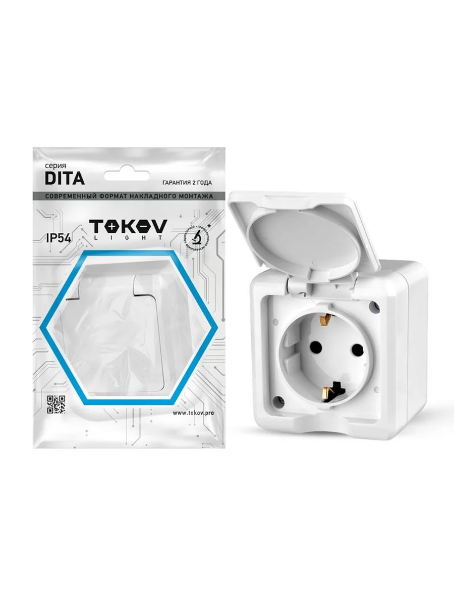 Розетка 1-м ОП Dita 16А IP54 250В с заземл. с крышкой бел. TOKOV ELECTRIC TKL-DT-R1Z-C01-IP54 - купить в KeepBuilding | KeepBuilding