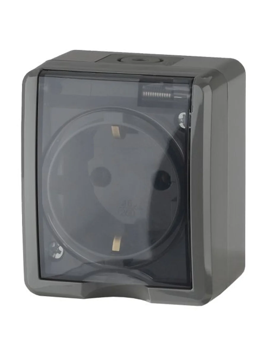 Розетка IP54 серии Эра Эксперт открытой установки цвет серый 11-2401-03 . Номинальные характеристики 16А 250В . Устройство выполнено из качественного поликарбоната, оснащёно уникальными винтовыми клеммами ЭКСПЕРТ для максимально качественного зажима кабеля в механизме.