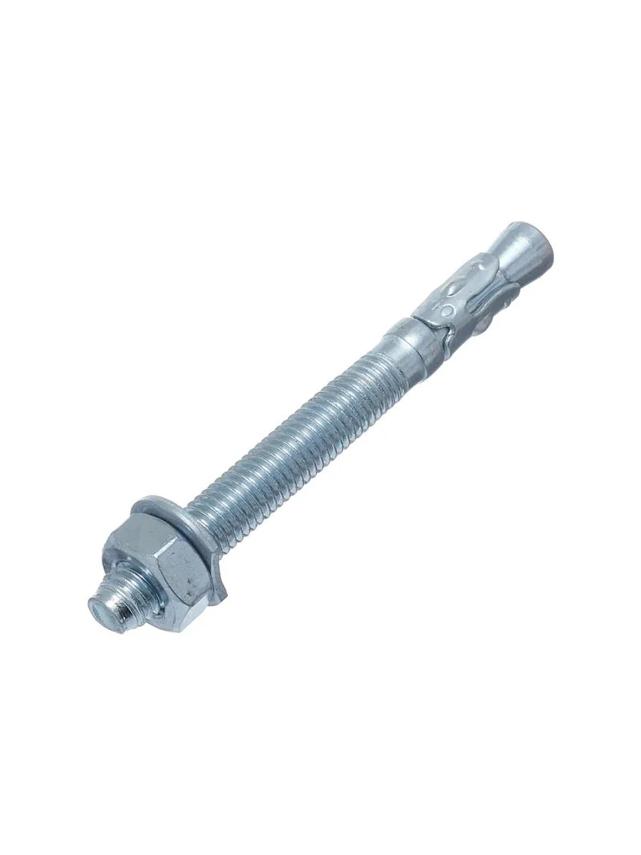 Анкерный крепеж относится к одним из наиболее надежных вариантов для применения в каменных стенах и перекрытиях. Одна из популярных разновидностей – клиновой анкер. В отличие от шурупов и гвоздей, анкер не просто входит в материал, а создает внутри предварительно просверленного отверстия упор. Прочность установки в несколько раз выше, а значит, на анкерные болты можно навешивать достаточно массивные носители (или призванные удерживать большой вес). Большинство анкеров производят из стали с антикоррозийным покрытием (цинк). По конструкции клиновой анкер состоит из следующих частей: • металлическая шпилька с метрической резьбой на внешней части, которая будет расположена над стеной; • раскрывающая цилиндрическая муфта – подвижный поясок, который впоследствии станет внутренним распором; • клиновой (конусообразной) хвостовик на внутренней части анкера; • гайка с внутренней резьбой, соответствующей резьбе шпильки, для закрепления устанавливаемой конструкции/детали. Важно правильно подбирать крепеж этого типа – он должен соответствовать расчету векторных сил, которые будут на него воздействовать. Роль играет материал, толщина, длина детали, плотность стены/перекрытия. Рабочая нагрузка не должна превышать параметр предельной нагрузки на выравнивание более чем на 25%. Установка анкера довольно проста, что и делает эти метизы популярными. Достаточно просверлить отверстие, очистить его от мусора, пыли, забить анкер и подкрутить гайку. Таким образом, изделие удерживается достаточно прочно за счет внутреннего распора и зажима резьбовых элементов.