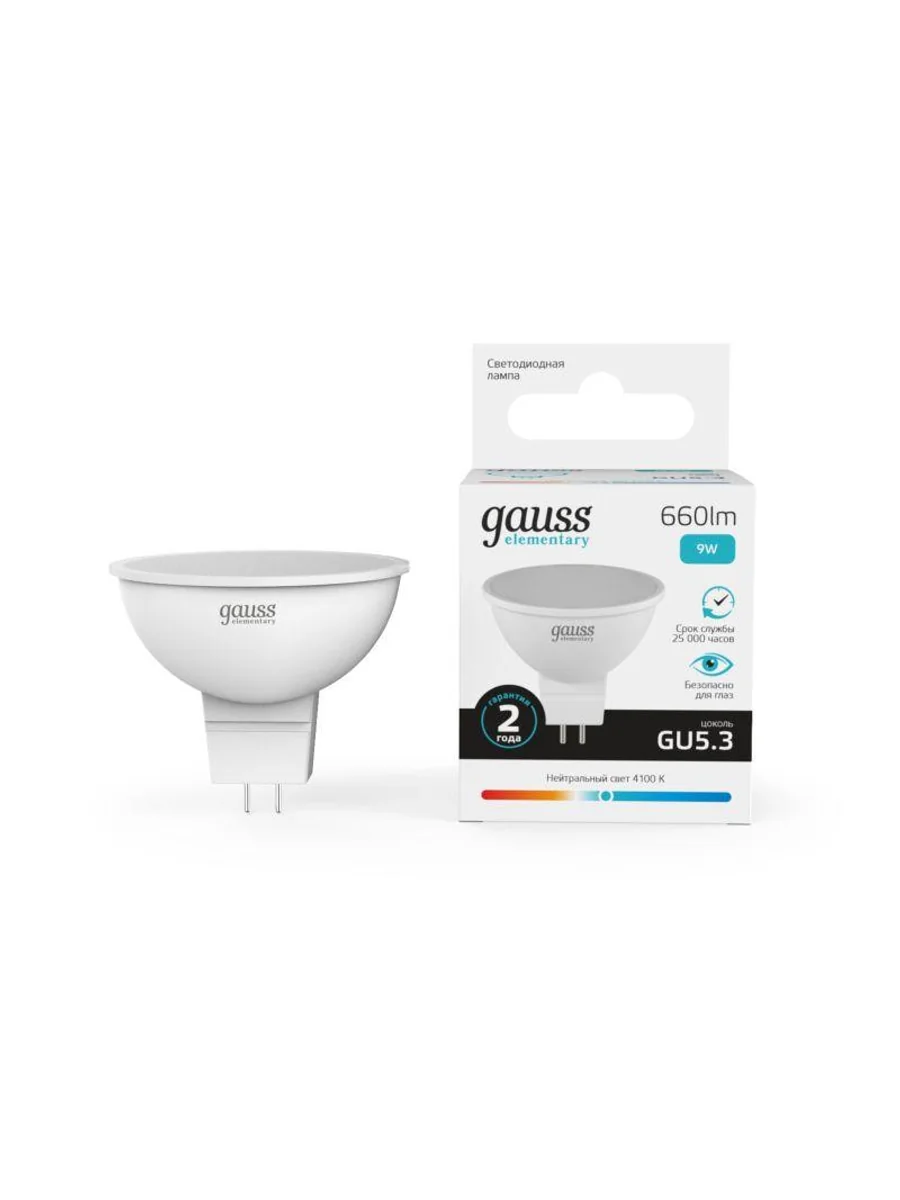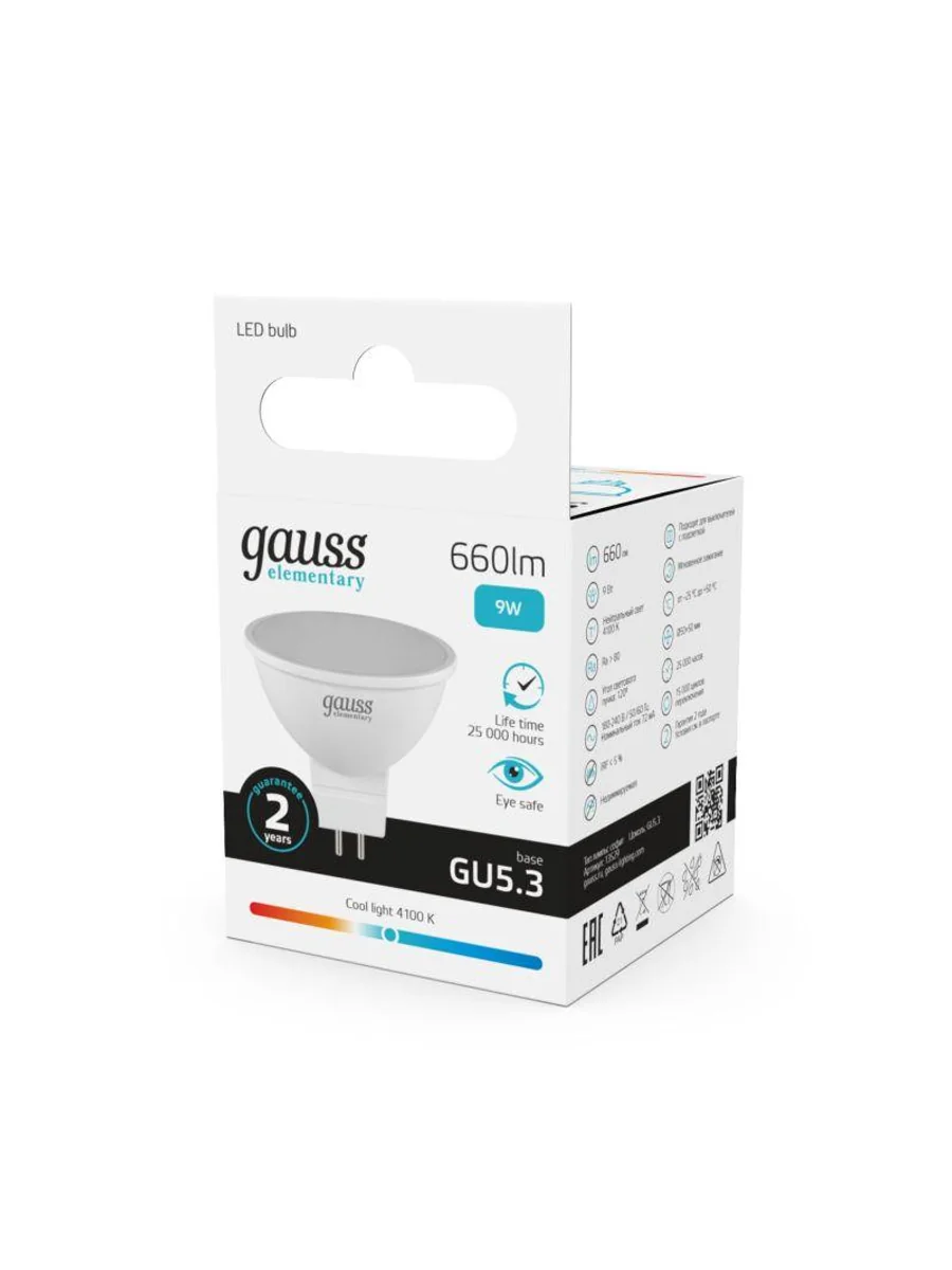 Лампа светодиодная Elementary 9Вт MR16 софит 4100К нейтр. бел. GU5.3 660лм GAUSS 13529 - купить в KeepBuilding | KeepBuilding
