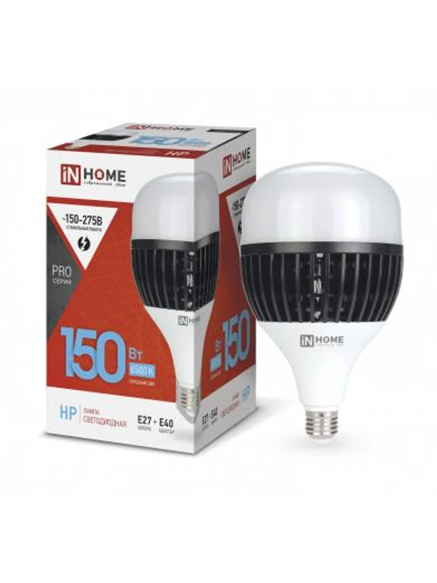 Лампа светодиодная LED-HP-PRO 150Вт грушевидная 6500К холод. бел. E27 14250лм 150-275В с адаптером E40 бел. IN HOME 4690612035703 - купить в KeepBuilding | KeepBuilding