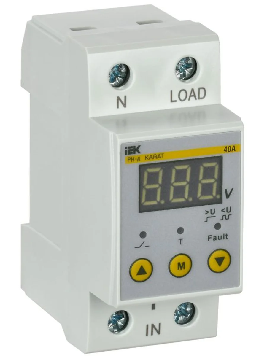 Используются для автоматического выключения питания при выходе напряжения или тока за допустимые пределы. Электронная плата анализирует параметры и выводит их на дисплей. Пределы возможно регулировать самостоятельно с помощью простого кнопочного меню. Реле напряжения устанавливается в электрических щитах квартир, частных домов и небольших коммерческих объектов для защиты электрооборудования от повреждений, вызванных длительным повышением или понижением напряжения.