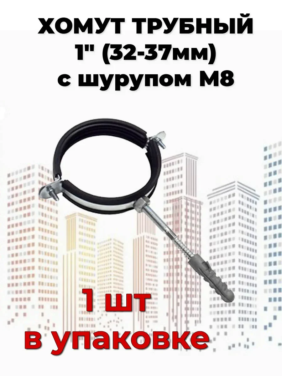 Хомут обеспечивает надежность крепления труб различного назначения к любым основаниям. Труба прочно фиксируется внутри хомута с помощью метрических винтов. Уплотнитель из высококачественной резины обеспечивает идеальную шумоизоляцию. А шуруп М8 достаточной прочный для любых материалов. Характеристики: Двухвинтовой, двухэлементный