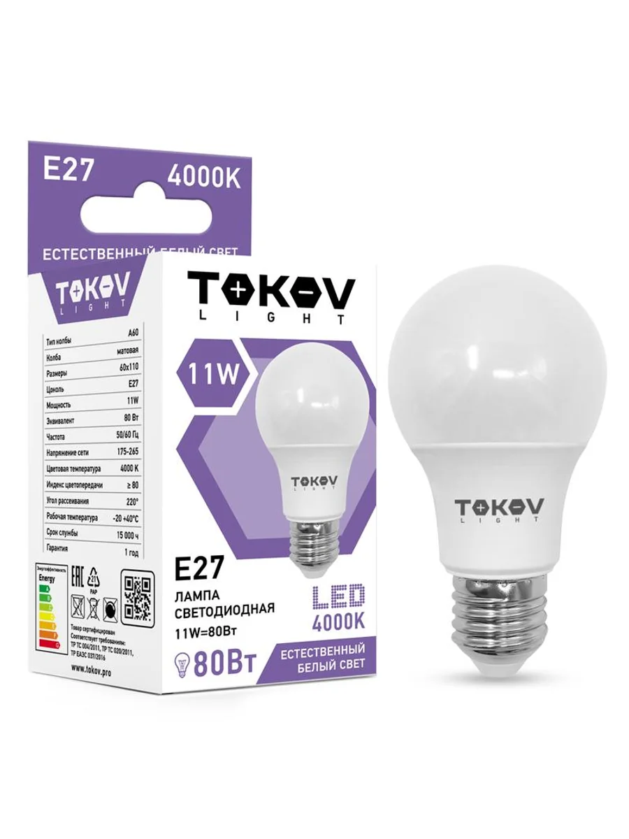 Лампа светодиодная 11Вт А60 4000К Е27 176-264В (TKL) TOKOV ELECTRIC TKL-A60-E27-11-4K - купить в KeepBuilding | KeepBuilding
