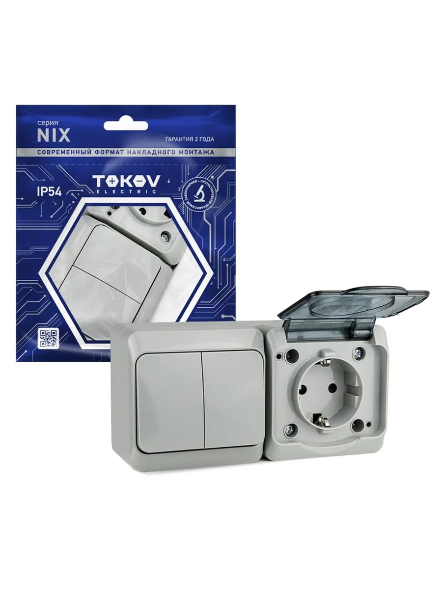 Блок ОП Nix (розетка 16А 250В с заземл. + 2-кл. выкл. 10А) IP54 сер. TOKOV ELECTRIC TKE-NX-V2RZ-C06T-IP54 - купить в KeepBuilding | KeepBuilding