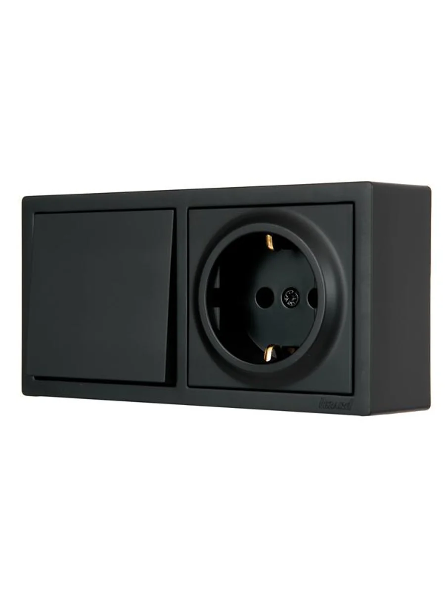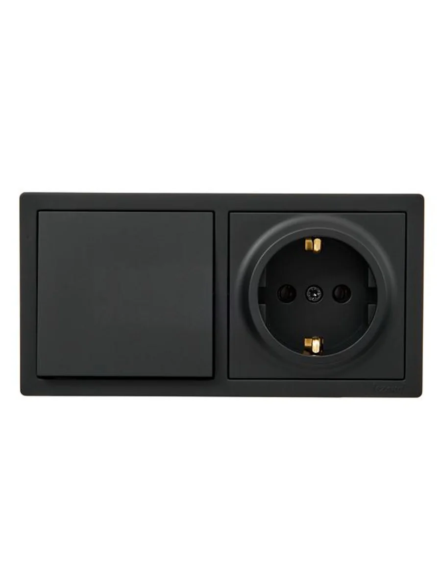 Блок ОП LETO (1-кл. выключатель + 1-м розетка с заземл.) горизонт. черн. бархат LEZARD 752-4200-170BAP - купить в KeepBuilding | KeepBuilding