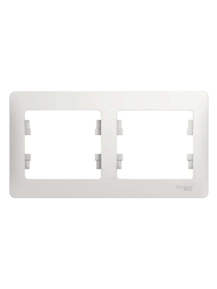 Рамка Systeme Electric серии Glossa (цвет белый) двухместная. - Устанавливается в горизонтальном положении. - Выполнена из материала PС+ASA, стойкого к УФ-излучению и появлению царапин. - Позволяет гармонично вписать электроустановочное изделие в интерьер помещения (ранее Schneider Electric MGU2.004.18, NU200418).
