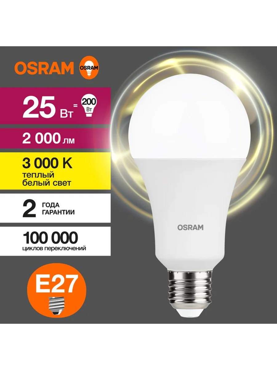 Лампа светодиодная LED Value A 25Вт 3000К тепл. бел. E27 2000лм угол пучка 180град. 220-240В матов. пластик (замена 200Вт) OSRAM 4058075696716 - купить в KeepBuilding | KeepBuilding