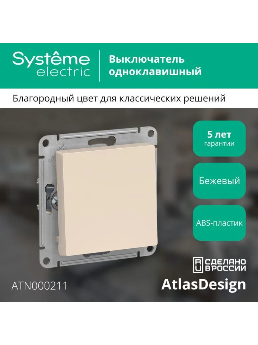 Механизм выключателя 1-клавишного Systeme Electric (ранее Schneider Electric) серии AtlasDesign в цвете бежевый подходит для сетей 250 В, на ток 10 А. Усиленные прямые монтажные лапки для лучшей фиксации механизма в монтажной коробке. Лицевые детали из качественного ABS-пластика, устойчивого к царапинам и УФ-излучению.