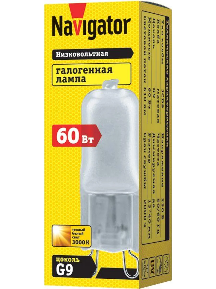 Лампа галогенная 94 233 JCD9 60Вт капсульная G9 3000К 230В frost 2000h Navigator 94233 - купить в KeepBuilding | KeepBuilding