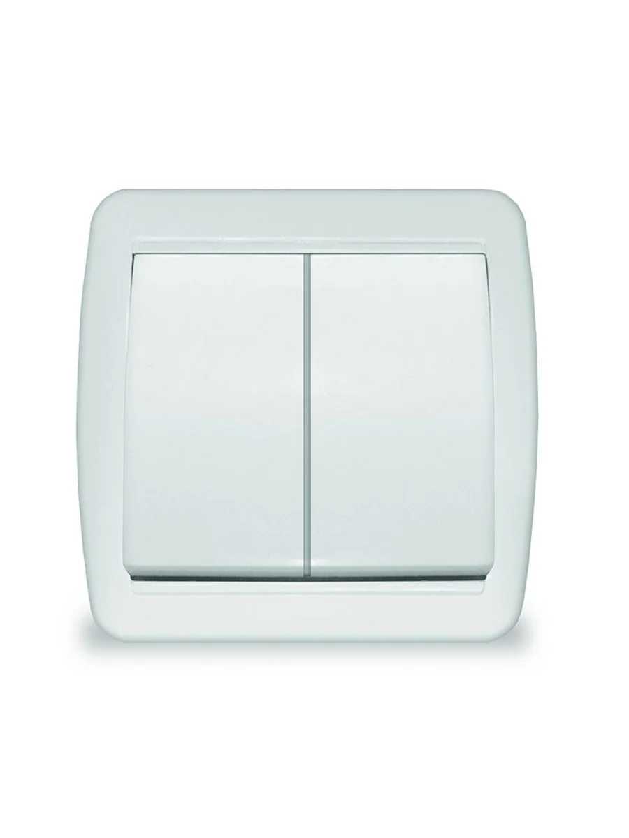 • НАЗНАЧЕНИЕ Выключатель 2-клавишный это двухпозиционный коммутационный аппарат с замыкающими (нормально-разомкнутыми) контактами, предназначенный для работы в сетях с напряжением до 1000 вольт, не предназначенный для отключения токов короткого замыкания, без специальных устройств дугогашения, местного управления, с ручным приводом. • ОБЛАСТЬ ПРИМЕНЕНИЯ В основном применяются для включения и выключения освещения в бытовых и производственных условиях. • ПРИНЦИП ДЕЙСТВИЯ Принцип действия основан на коммутации контактов механическим способом (нажатием) , при этом положения коммутации фиксированы и позволяют находится в этом режиме достаточно долго, вплоть до следующего воздействия. • ДОПОЛНИТЕЛЬНЫЕ ПРИНАДЛЕЖНОСТИ ИЛИ АКСЕССУАРЫ