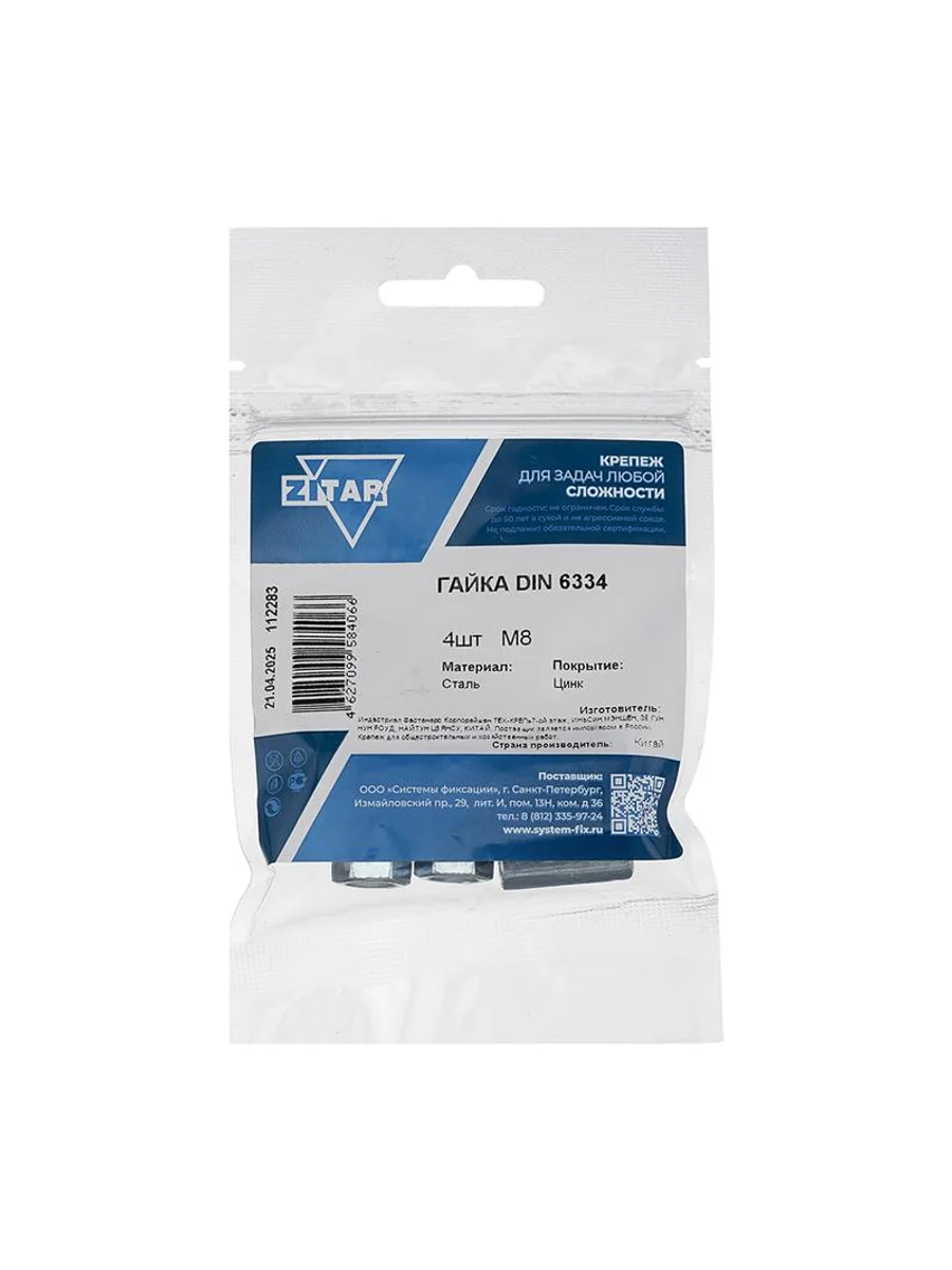 Гайка соединительная М8 DIN 6334 цинк. (пакет) (уп.4шт) Zitar 112283