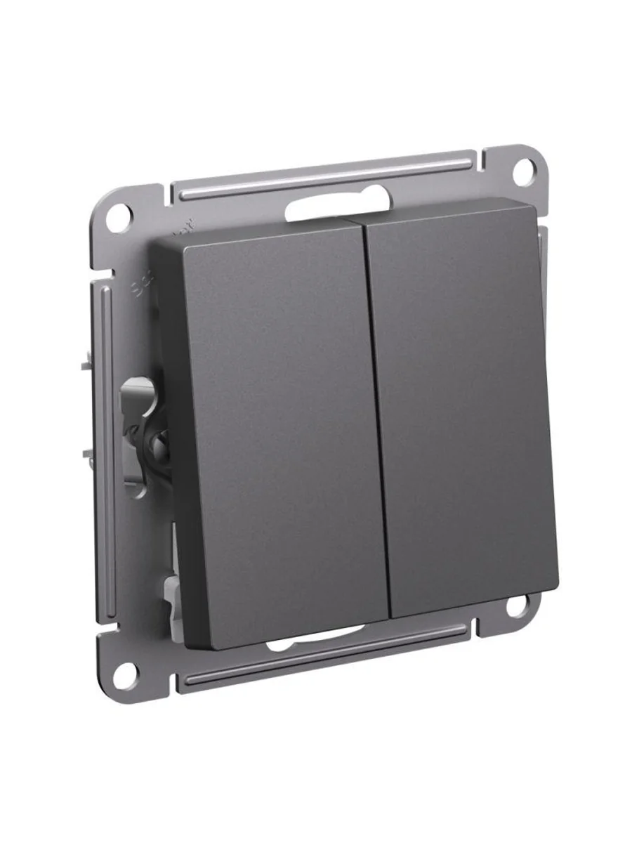 Механизм выключателя 2-клавишного Systeme Electric (ранее Schneider Electric) серии AtlasDesign в цвете базальт подходит для сетей 250 В, на ток 10 А. Двухклавишный выключатель позволяет управлять двумя источниками света с одной точки. Лицевые детали из качественного ABS-пластика, устойчивого к царапинам и УФ-излучению. Усиленные прямые монтажные лапки для лучшей фиксации механизма в монтажной коробке.