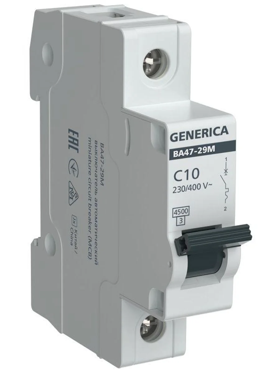 Выключатель автоматический модульный 1п C 10А 4.5кА ВА47-29М GENERICA MVA21-1-010-C-G - купить в KeepBuilding | KeepBuilding