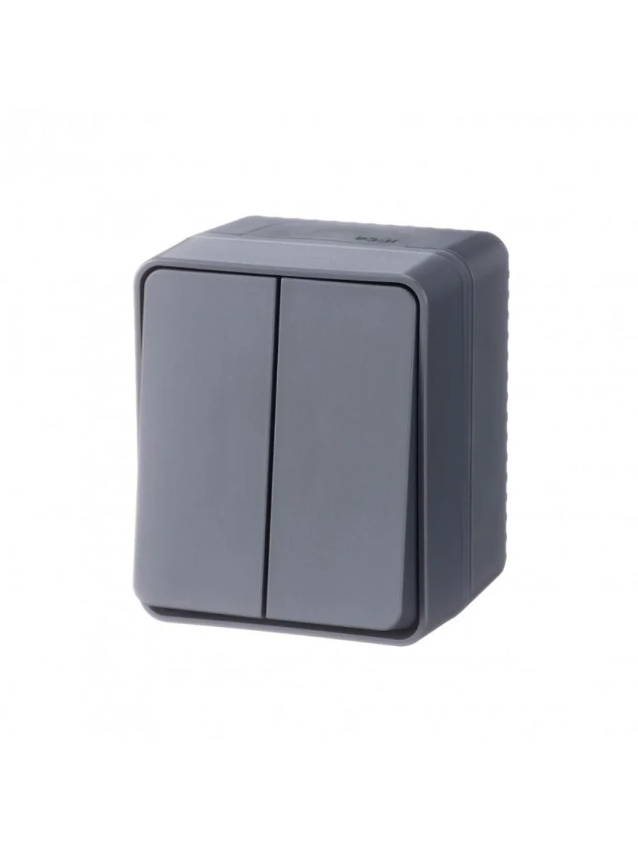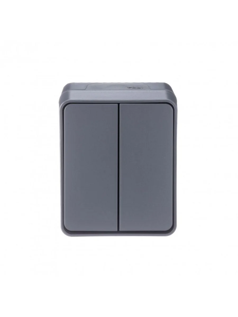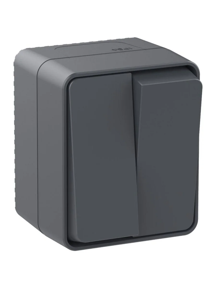 Выключатель 2-клавишный для открытого монтажа. Степень защиты IP:54, Степень защиты IK: IK08. Продукция AtlasDesign Profi54 созданы специально для тех мест, где требуется повышенная защита от влаги и пыли. Уютная веранда в загородном доме, уличное кафе, любимый гараж или мастерская – выключатели и розетки будут обеспечивать надежную защиту и радовать глаз современным дизайном. Элегантный цвет антрацит гармонично впишется в любую обстановку.