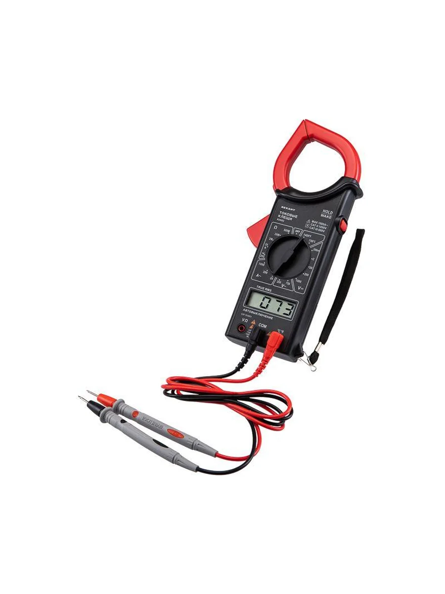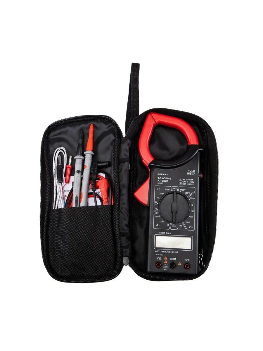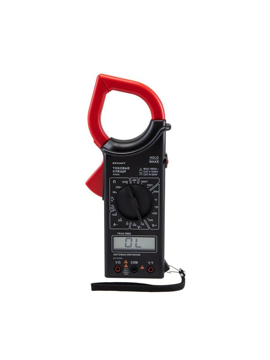 Многофункциональные компактные цифровые токовые клещи R266C REXANT– это прибор, который позволяет измерять переменный ток без разрыва самой цепи, в которой проводится измерение. Модель R266C представлена в обновленном дизайне. Среднеквадратичный метод измерения значений (True RMS) гарантирует точные результаты измерений. Подключение датчика температуры производится через обычное гнездо для щупов, что значительно упрощает процесс работы и расширяет функционал прибора. Выбор диапазонов измерений – ручной. Встроена функция автоотключения, способствующая экономии заряда батареи. Параметры измерений: Постоянное напряжение: 200мВ/2В/20/В200В/1000В ± (0.8%) ? Переменное напряжение: 200В/750В ± (1.2%) Переменный ток: 20A/200A/1000A ± (2.5%)? Сопротивление: 200 Ом/2 МОм ± (5.0%) Температура: от 0 °С до +750 °С ± (3.0%)? Основные функции и особенности: Среднеквадратичный метод измерения значений – True RMS Ручной выбор пределов измерений Функция памяти данных DATA HOLD Режим «прозвонка» Автоматическое отключение питания через 15 минут Разрядность дисплея: 2000 отсчетов Раскрыв клещей: 50 мм Индикация перегрузки и полярности Индикация заряда батареи Батарея: ААА 2 шт х1,5В Вес с батареей: 314 г Габариты: 235х100х46 мм В комплекте: токовые клещи, измерительные щупы, термопара, чехол, батарея, инструкция