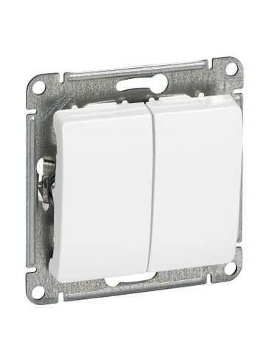 Механизм Systeme Electric серии Glossa (цвет белый) выключателя 2-клавишного подходит для сетей 250 В, на ток 10 А. - Двухклавишный выключатель позволяет управлять двумя источниками света с одной точки. - Выполнен из материала PС+ASA, стойкого к УФ-излучению и появлению царапин. - Эргономичные клеммы расположены в два ряда: сверху и снизу (ранее Schneider Electric MGU5.211.18ZD, NU521118).