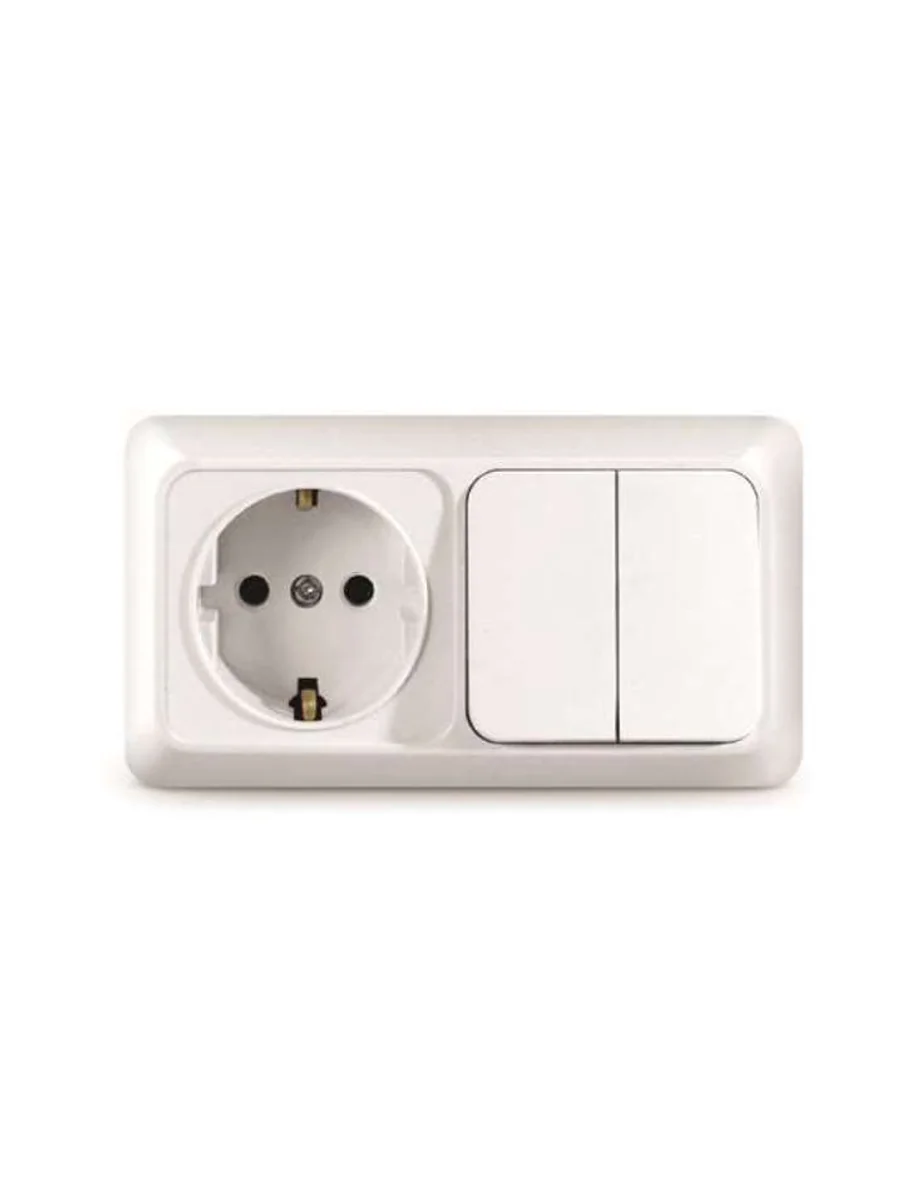 Блок ОП Олимп 2-кл. вык.+ роз. с заземл. горизонт. бел. UNIVersal О0033 представлен потребителю в серии "Олимп". Серия "Олимп" для открытой установки сочетает в себе функциональность с практичностью. Изделия данной серии удачно вписываются в интерьер любого помещения и производят приятное впечатление. Блок объединяет двухклавишный выключатель и розетку. Корпус представляет собой форму из пластика, белого цвета. Контактная группа изделий изготовлена из латуни. Монтируется горизонтально, на глубину 48 мм, на поверхность стены. Рекомендованы для жилых помещений и административных зданий. Срок службы составляет 5 000 циклов включения/отключения.