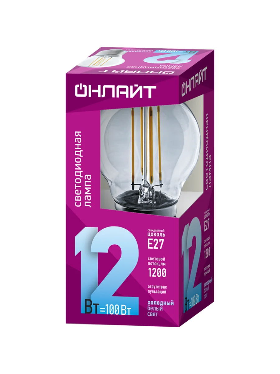 Лампа светодиодная филаментная 80 885 OLL-F-G45-12-230-4K-E27 12Вт шар прозрачная 4000К нейтр. бел. E27 1200лм 220-240В ОНЛАЙТ 80885 - купить в KeepBuilding | KeepBuilding
