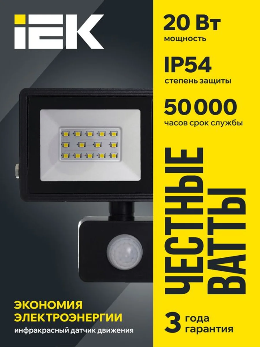 Прожектор светодиодный СДО 06-20Д 6500К IP54 с ДД черн. IEK LPDO602-20-65-K02 - купить в KeepBuilding | KeepBuilding