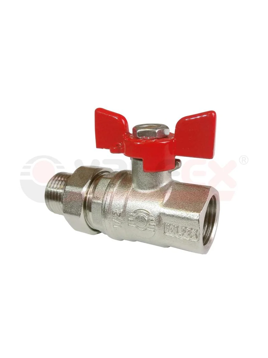 Кран шаровой латунный PREMIUM для ВОДЫ 3/4дюйм ВР/НР бабочка америк. НИКЕЛИР-Й 11Б27фт1М (40/10) VALFEX VF.227.NB1.034.PREMIUM