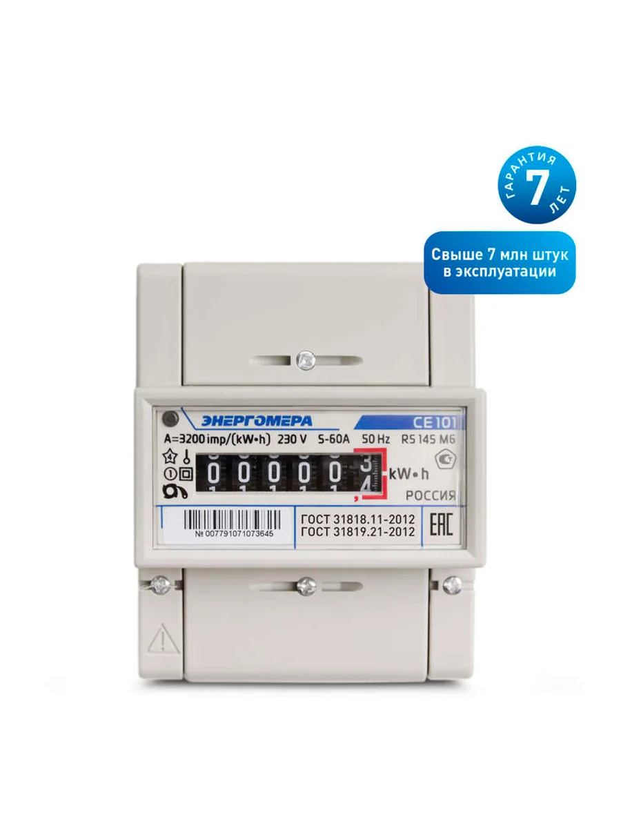 Счетчик CE101 R5 145 M6 1ф 5-60А класс точн. 1.0 1 тариф. на DIN-рейку мех. ОУ Энергомера 101001003007791 | KeepBuilding