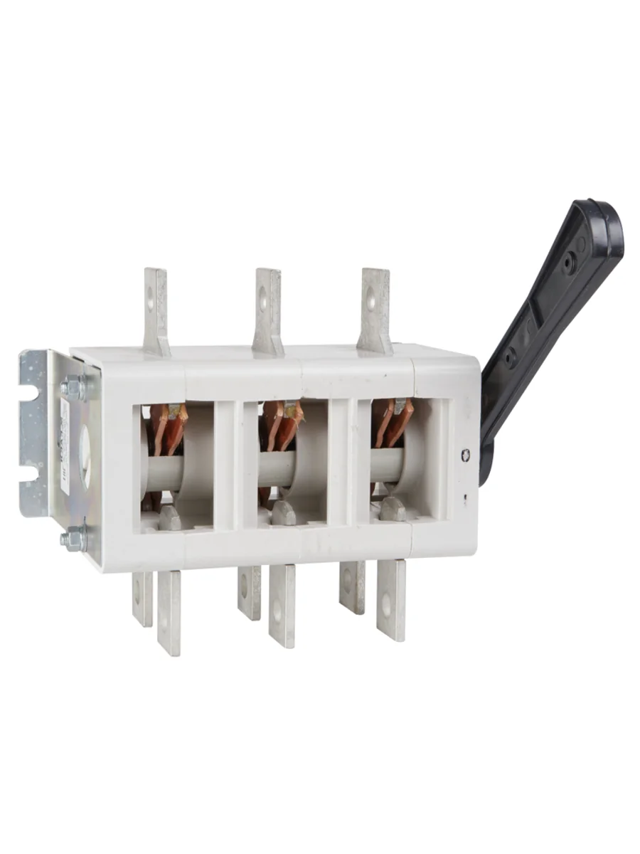 Выключатель-разъединитель 3 полюсный на номинальный ток 400 А, в котором установлена несъемная рукоятка.