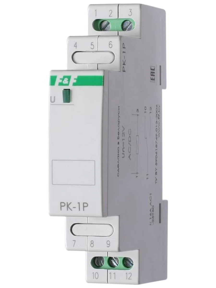 Реле промежуточное PK-1P/Un (монтаж на DIN-рейке 35мм 24В AC/DC 16А 1P IP20) F&F EA06.001.003 | KeepBuilding