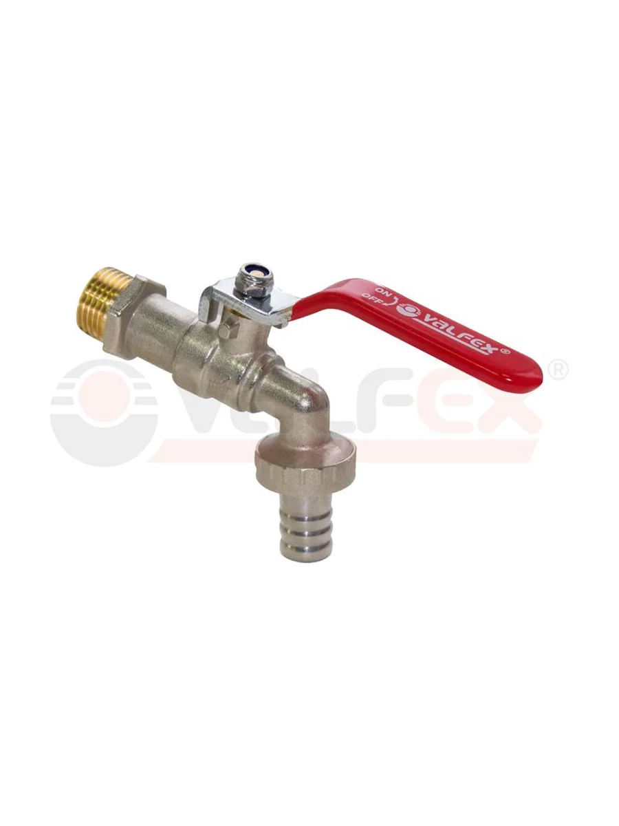 Кран шаровой латунный 1/2дюйм водоразборный со штуцером ручка-бабочка НИКЕЛИР-Й(120/15) К VALFEX VF.436.NB.012