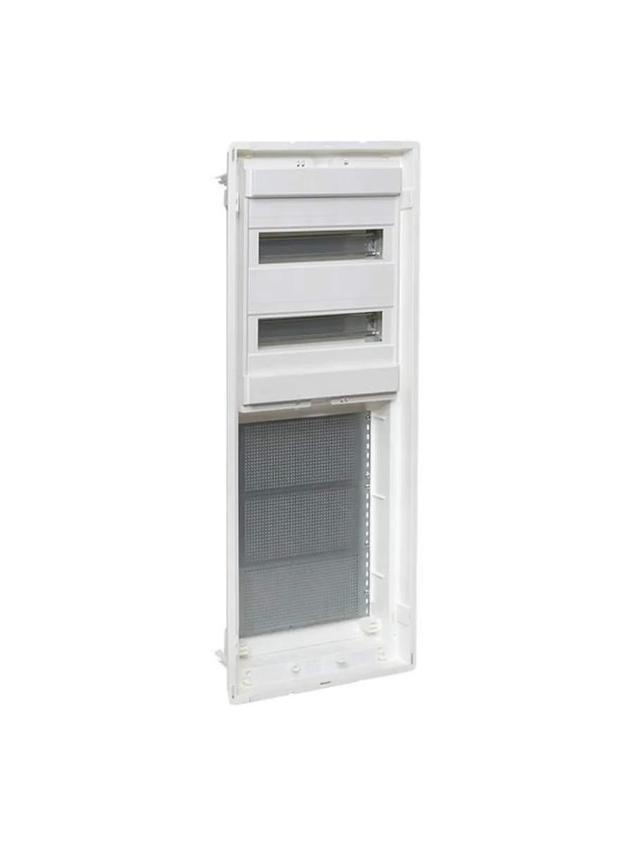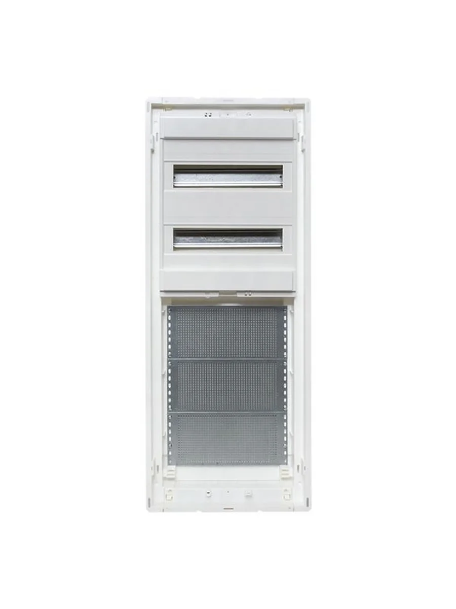 Корпуса пластиковые серии «Nova» предназначены для сборки силовых, слаботочных и комбинированных щитов. На DIN-рейки устанавливается модульное оборудование. На монтажные платы – антенные разветвители, Wi-Fi роутеры, патч-панели и иное слаботочное оборудование. Щиты устанавливаются как в бетонные и кирпичные стены, так и в гипсокартон, монтажные комплекты для установки в гипсокартон входят в комплектацию оснований щитов либо в комплектацию щитов в сборе. Двери щитов можно выбрать их разных материалов – пластик, металл или металл с перфорацией. Также доступны дополнительные аксессуары, необходимые для установки мультимедийного оборудования и существенно упрощающих монтаж щитов. Есть возможность приобрести как отдельно основание щита и дверь, так и основание с дверью в комплекте в одной коробке. Основные преимущества: съемные шасси с din-рейками, съемные кабельные фланцы, гребенка для фиксации входящих проводников, регулировка дверей по глубине, современный минималистичный дизайн
