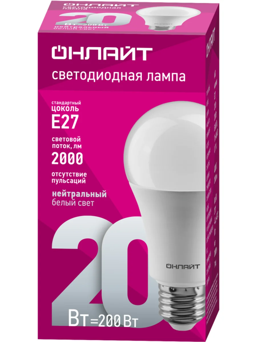 Лампа светодиодная 61 158 OLL-A60-20-230-4K-E27 20Вт грушевидная ОНЛАЙТ 61158 - купить в KeepBuilding | KeepBuilding