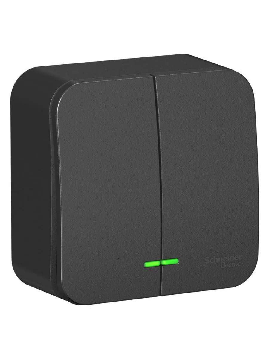Выключатель Systeme Electric (ранее Schneider Electric) BLANCA (антрацит, открытой установки) с изолирующей пластиной двухклавишный предназначен для сетей до 250В, на ток до 10А. Подсветка делает его легко находимым в отсутствие освещения. Двухклавишный выключатель позволяет управлять двумя источниками света из одной точки. Он изготовлен из ABS-пластика, прост в установке и удобен в применении.