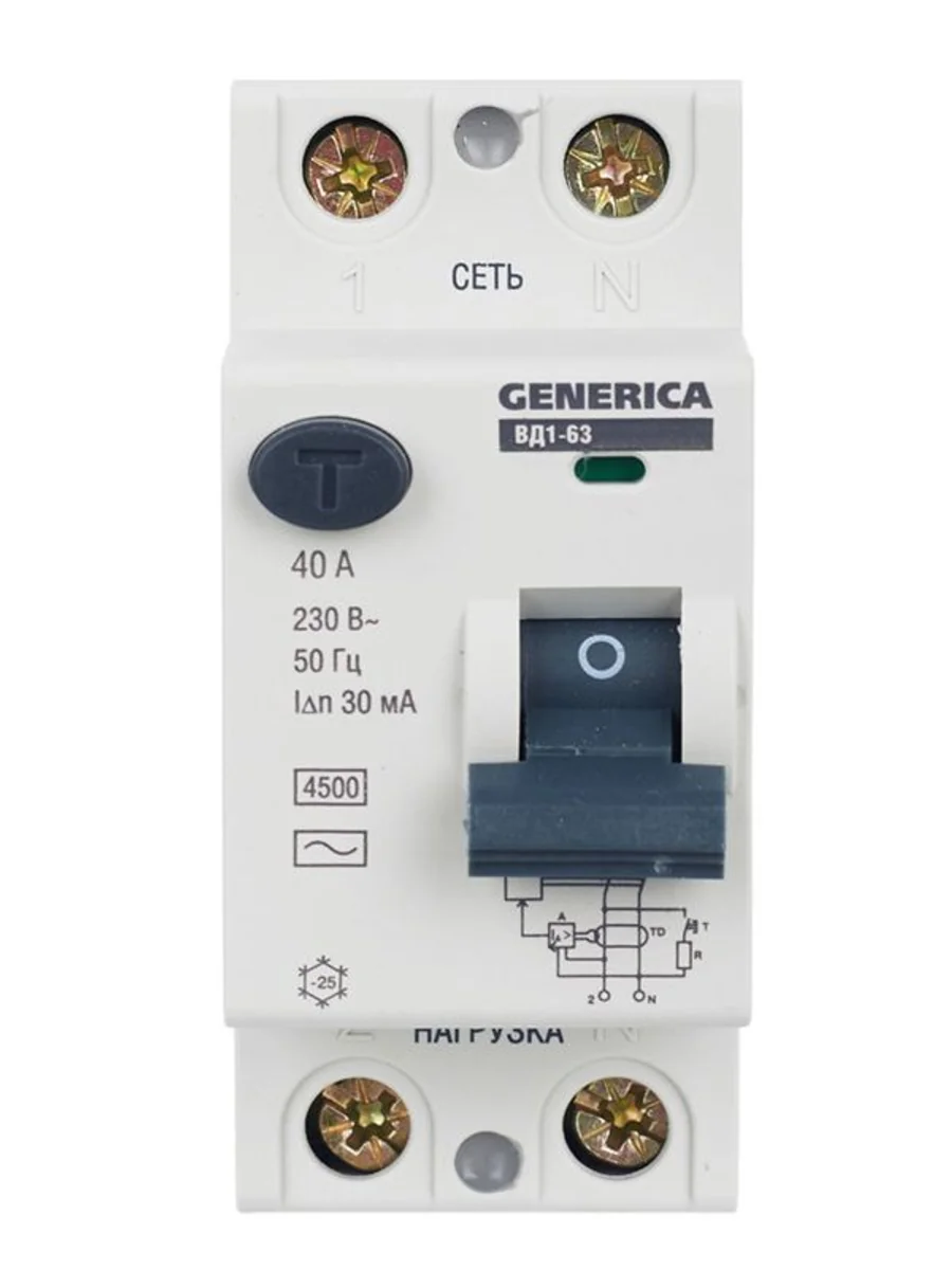 Выключатель дифференциального тока (УЗО) 2п 40А 30мА тип AC ВД1-63 GENERICA MDV15-2-040-030 - купить в KeepBuilding | KeepBuilding