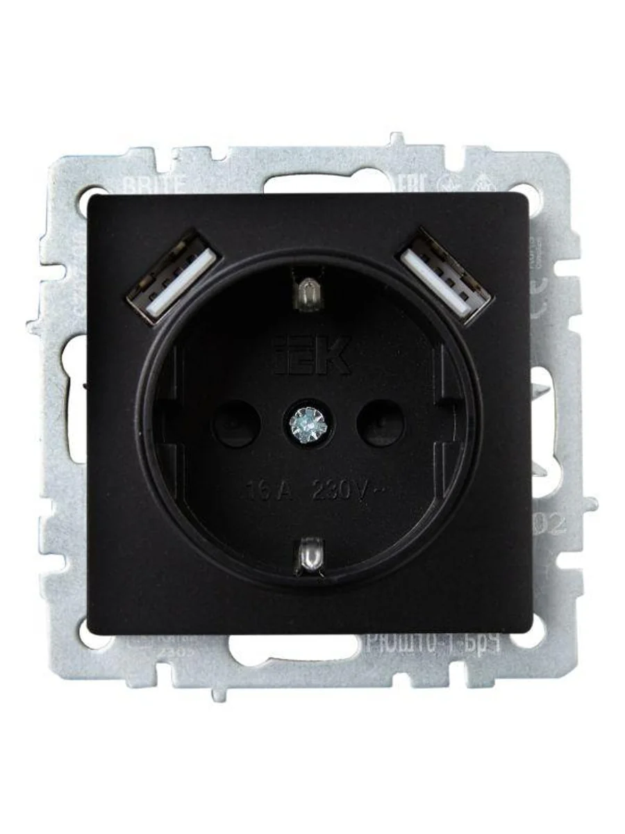 Розетка BRITE РЮш10-1-БрЧ 16А с USB A+A 2.1А с заземл. защ. шторки механизм черн. IEK BR-R14-16-U21-D21-K02 - купить в KeepBuilding | KeepBuilding