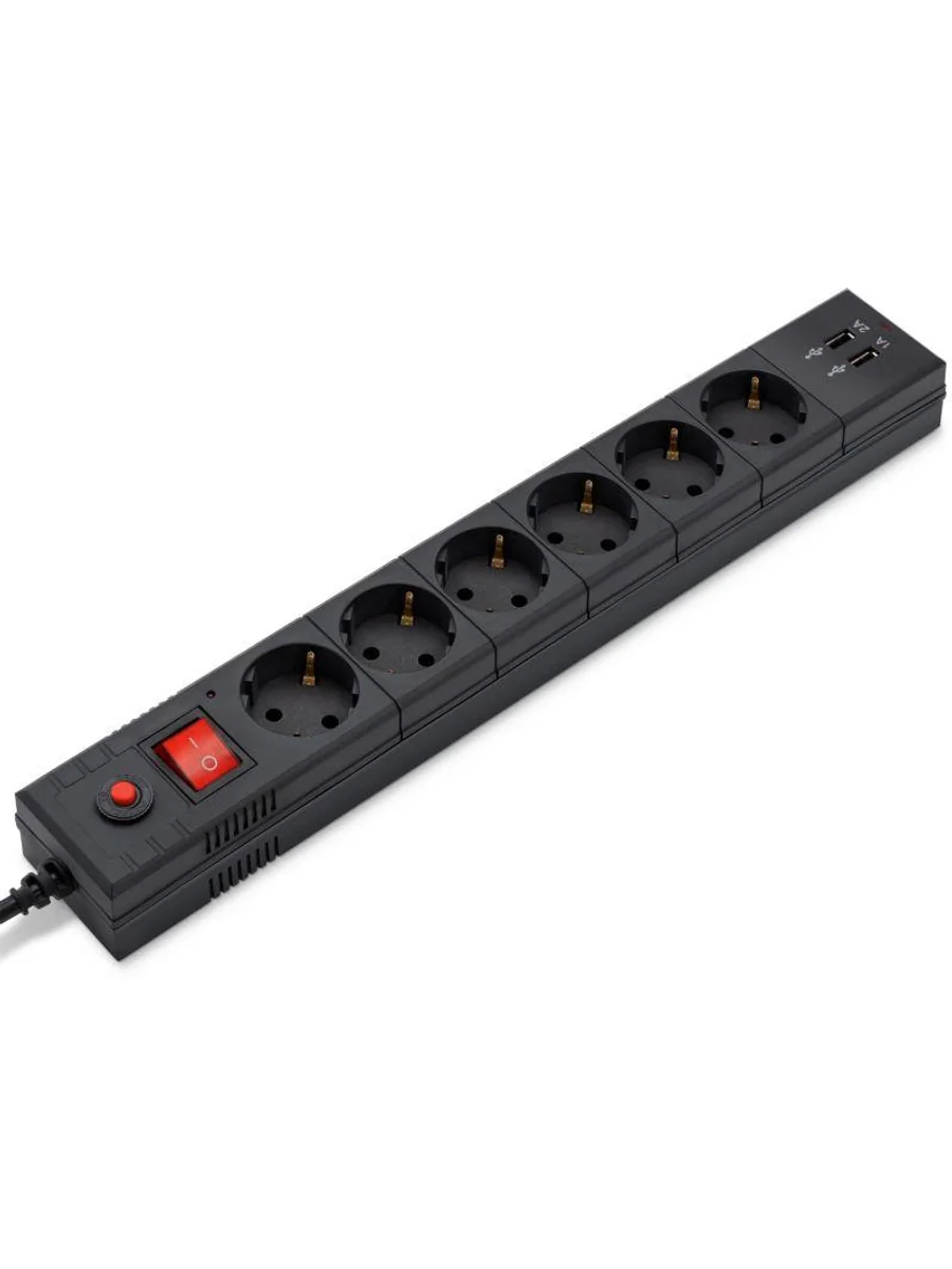 Удлинитель с сетевым фильтром 6х1.8м с заземл. 10А IP20 BU-SP1.8_USB_2A 2.2кВт 2хUSB CCA черн. BURO 992310 - купить в KeepBuilding | KeepBuilding