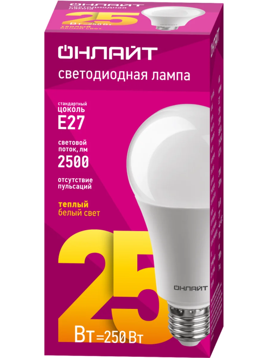 Лампа светодиодная 61 953 OLL-A60-25-230-2.7K-E27 25Вт ОНЛАЙТ 61953 - купить в KeepBuilding | KeepBuilding