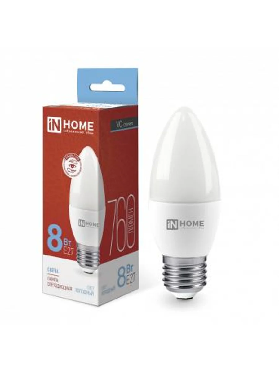 Лампа светодиодная LED-СВЕЧА-VC 8Вт свеча 6500К холод. бел. E27 760лм 230В IN HOME 4690612024820 - купить в KeepBuilding | KeepBuilding