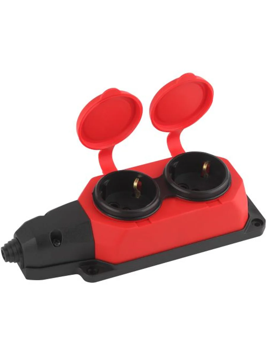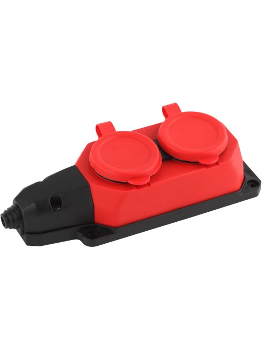 Колодка электрическая каучуковая Эра K-2e-RED-IP44 c заземлением, 2 розетки. Корпус выполнен из пыле- и влага- защищенного материала (каучук). Рассчитана на максимальную мощность 16А / 3500 Вт и для подключения кабеля сечением до 2,5 мм2. Электрическая колодка подойдет для тех, кто хочет сделать удлинитель самостоятельно. Также может использоваться как накладные розеточные блоке в подсобных помещениях.